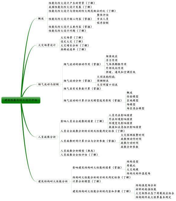 掌握建筑性能化防火设计评估的概念以及可以解决的问题,熟悉如何确立消防安全目标及判定条件,了解烟气模拟计算分析手段和烟气羽流有关参数的计算方法,掌握烟气流动几种计算模型的适用条件;了解人员安全疏散计算模拟分析手段和影响人员安全疏散的因素,掌握疏散安全所需时间的组成和计算方法,熟悉通用疏散分析模型及特性;了解建筑结构的主要形式及其耐火性能的特点,掌握影响建筑构件耐火性能的主要因素,了解钢结构、钢筋混凝土结构的耐火计算方法以及整体结构计算的方法和步骤。